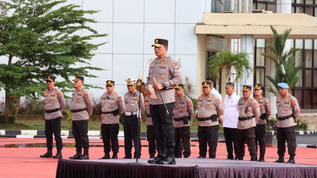 TANJUNG SELOR – Kapolda Kalimantan Utara Irjen Pol. Djati Wiyoto Abadhy memimpin apel pagi personel Polda Kaltara di Lapangan Apel Mapolda Kaltara, Senin (5/1), sekaligus menyampaikan apresiasi atas keberhasilan pengamanan rangkaian Natal 2025 dan malam pergantian Tahun Baru 2026.