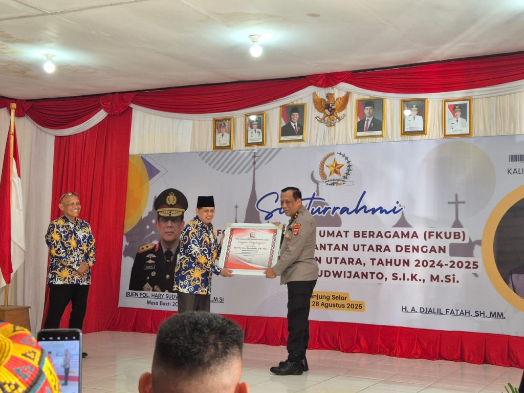Acara ditutup dengan momen penghargaan. Asosiasi FKUB Indonesia dan FKUB Kaltara menyerahkan piagam kepada Irjen Pol Hary sebagai bentuk terima kasih atas dedikasi dan dukungannya menjaga harmoni lintas agama di wilayah perbatasan. Dua piagam tersebut bukan sekadar tanda penghormatan, tetapi juga kenangan manis dari keluarga besar FKUB untuk seorang sahabat yang telah menorehkan pengabdian terbaik bagi masyarakat Kaltara. (nur)