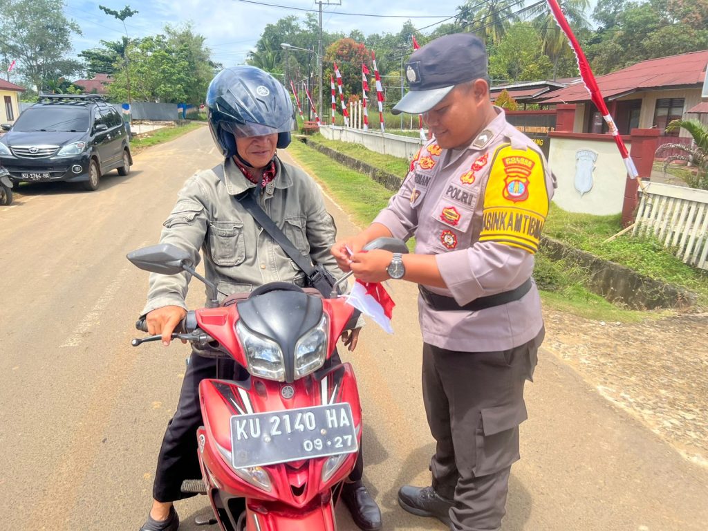 Kegiatan ini dilaksanakan dengan antusiasme tinggi dari masyarakat. Tidak hanya menjadi ajang distribusi bendera, momen ini juga dimanfaatkan sebagai ruang edukasi dan dialog singkat antara aparat kepolisian dan warga, untuk memperkuat sinergi menjaga persatuan dan semangat nasionalisme.